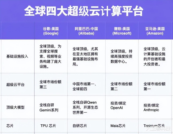 现在呢?再提到云计算,中国不再是空白,阿里云已经成长为全球Top4的世界级企业,和谷歌、亚马逊、微软等世界级的科技企业可以同桌吃饭了。进入AI时代后,阿里加速升级AI基础设施,不仅拿出千亿投资,更坚定的走上了“全模态、全尺寸”全面开放的开源路线。