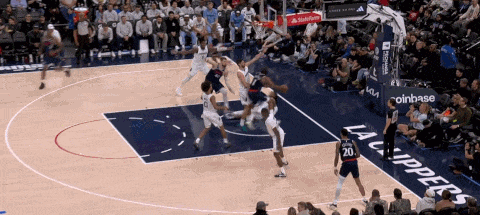 这使得快船对杰克逊的防守策略更加激进,身后由科林斯垫防,上线也来夹击,杰克逊则立刻助攻到外线接应的考沃德: