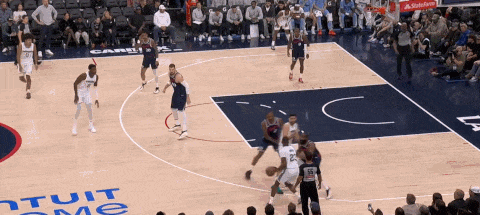 转换过程中的简单掩护制造更小的错位(博格丹),迅速背身单挑向底线转身避免夹击出手。