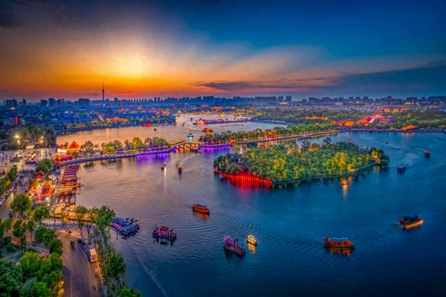别不信。这条全长2.5公里的汴河游船线,就像一根金线,把开封最核心的八大景区串成了项链。船在水中行,人在画中游,两岸是亭台楼阁,头顶是千年中轴线,脚下是流淌的北宋时光。