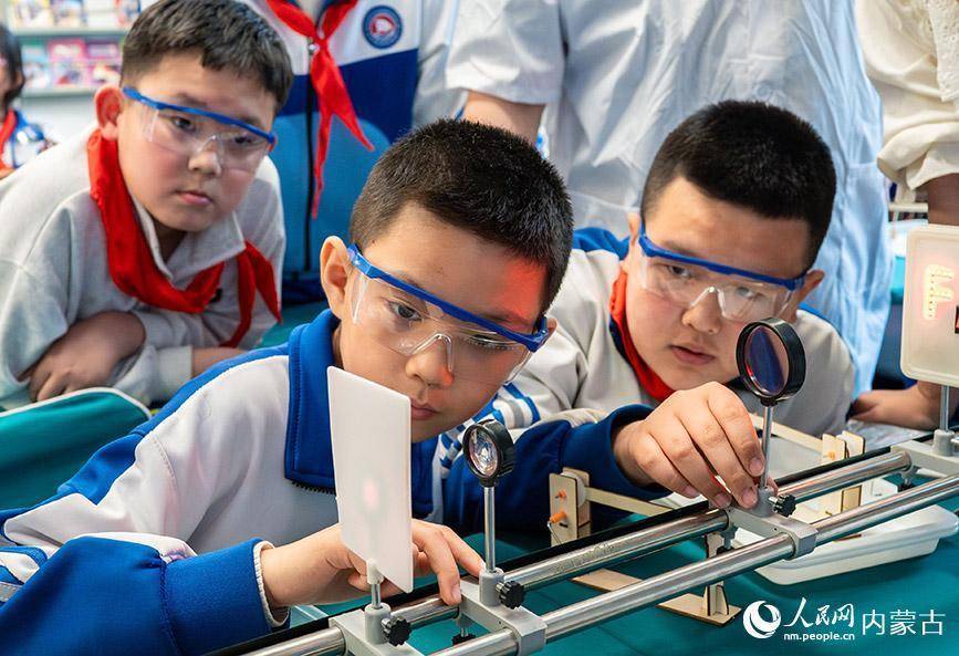3月26日,呼和浩特市玉泉区通顺街小学的学生在参加科学实验社团活动。丁根厚摄