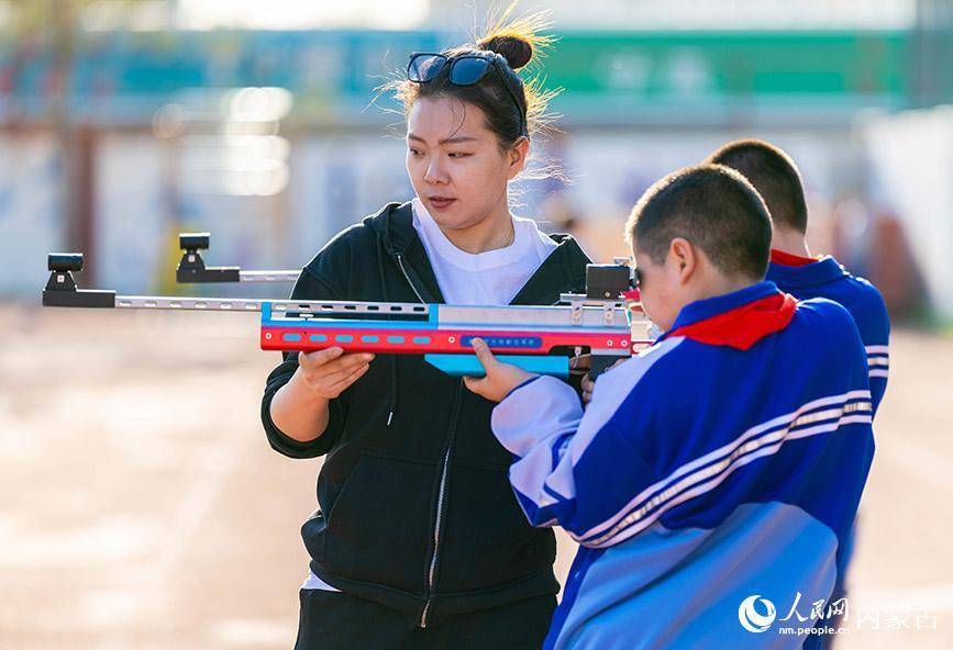 3月26日,呼和浩特市玉泉区通顺街小学射击社团的学生在教练的指导下进行据枪稳定性训练。丁根厚摄