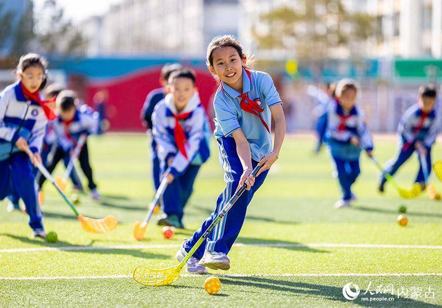 3月26日,呼和浩特市玉泉区通顺街小学曲棍球社团的学生在进行运球练习。丁根厚摄春季学期以来,内蒙古呼和浩特市玉泉区通顺街小学以“健康第一”为引领,构建“基础普及+特色提升”双轨培养体系,依托曲棍球、射击、篮球、无人机、科学实验、机器人等多元社团课程,满足学生个性化发展需求,让校园变身孩子们全面发展的乐园。(丁根厚)